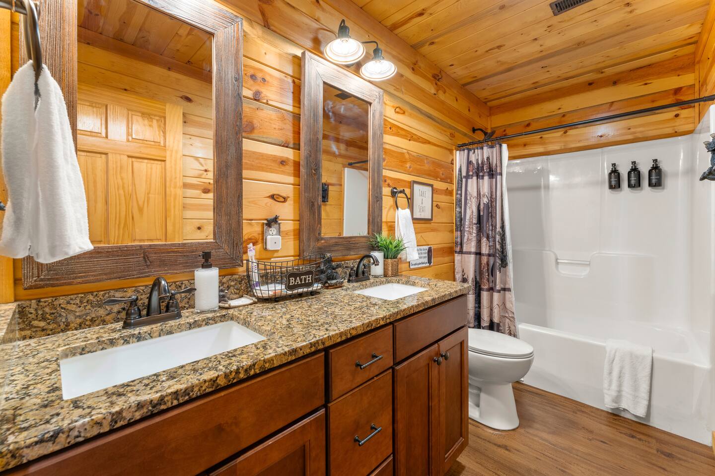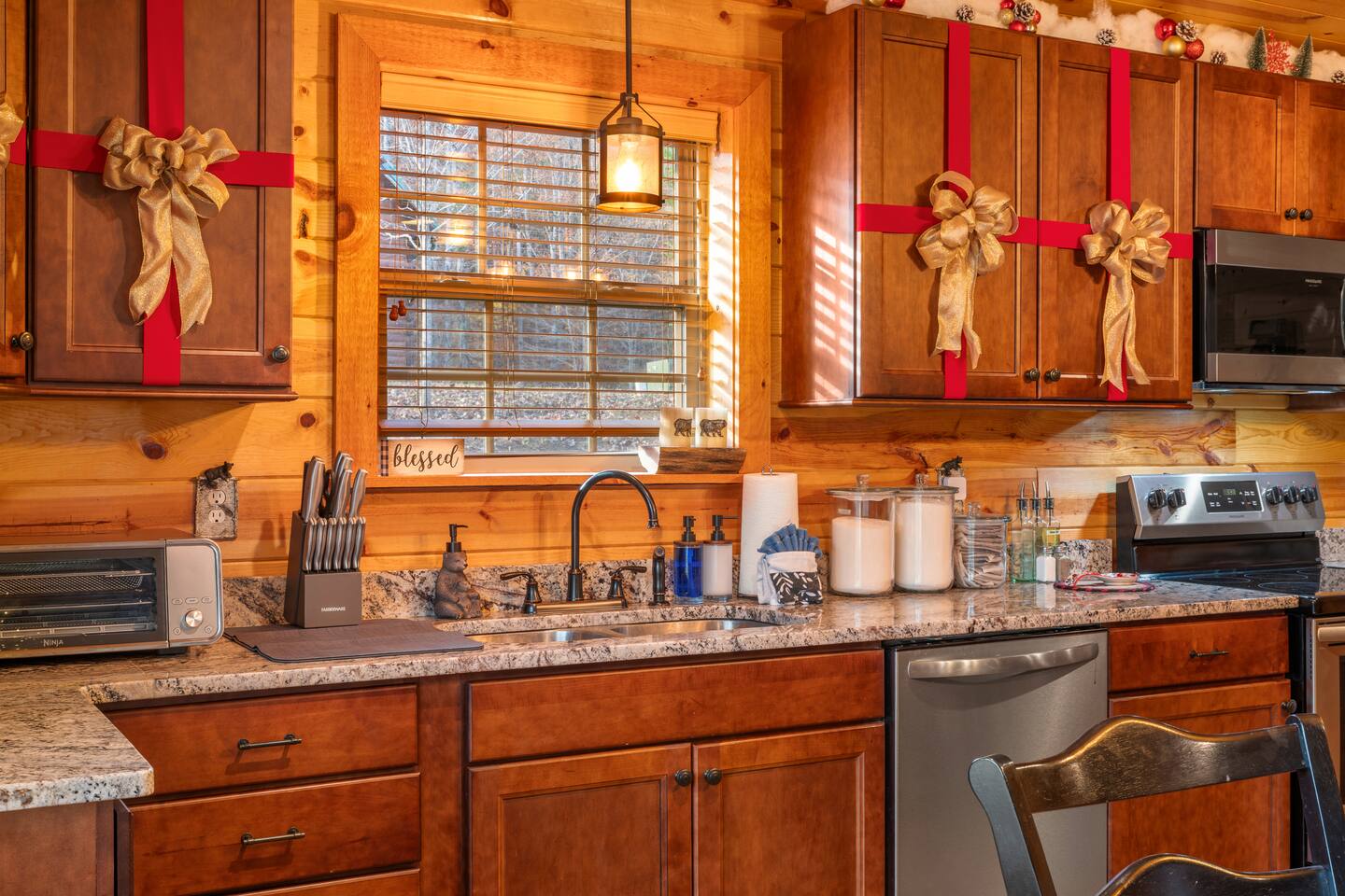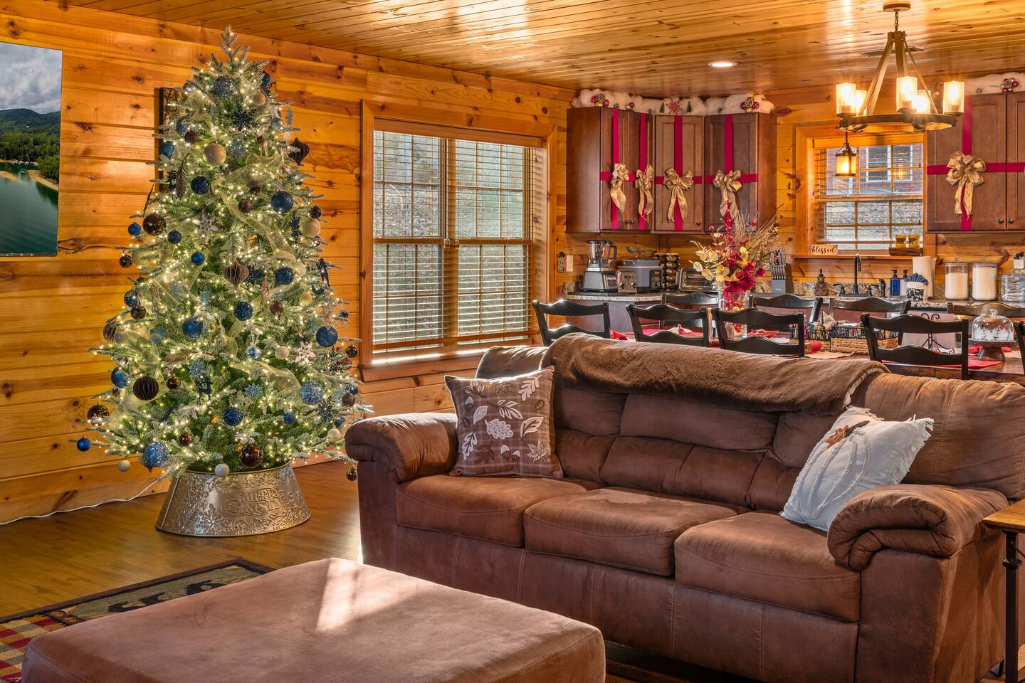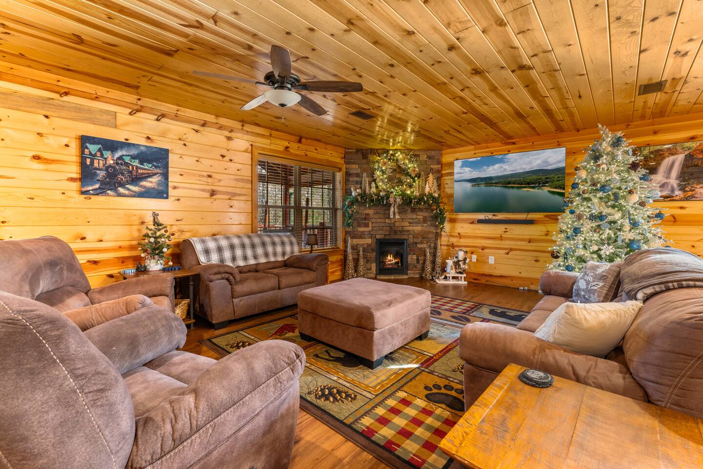 ⭐ At a glance Sleeps 12 | 4 bedrooms / 3.5 baths 2 King suites + queen bedrooms + queen-over-queen bunks Private 6-person hot tub Massive game room + theater area Easy paved access (no steep mountain roads) Pet-friendly (up to 2 dogs) Minutes to Dollywood, The Island & Gatlinburg Welcome to Holliebear’s Hideaway Holliebear’s Hideaway is a 3,240 sq ft luxury log cabin in Pigeon Forge, Tennessee, thoughtfully designed for families and groups. With spacious gathering areas, cozy sleeping arrangements, and endless entertainment, this cabin blends classic Smoky Mountain charm with modern comfort — the perfect home base for your mountain getaway. 📍 Easy Access & Prime Location Only 1 step to enter — no steep stairs or long climbs Paved roads all the way to the cabin High-speed WiFi throughout Conveniently located near top attractions: 5.5 miles to The Island in Pigeon Forge 8.9 miles to Dollywood & Splash Country 7.2 miles to Tanger Outlets 13.3 miles to Gatlinburg 14.3 miles to Smoky Mountain Knife Works Enjoy a peaceful resort setting while staying just minutes from the action. 🛏️ Layout & Sleeping Arrangements Main Level (no interior stairs once inside): Open-concept living room with gas fireplace, large smart TV & surround sound Fully stocked gourmet kitchen Dining table seating 12 Upper deck with gas grill, rocking chairs & porch swing King master suite with private bath 2 queen bedrooms 2 full bathrooms Lower Level: Second king master suite with private bath Queen-over-queen bunk beds in the game room Game room & theater area 1 full bathroom + 1 half bath Laundry room with full-size washer & dryer (starter detergent provided) 🎮 Game Room & Entertainment The lower-level game room is a guest favorite and perfect for all ages: Pool table Shuffleboard table 2 arcade machines (classic games + TMNT) Card / poker table with chips and decks Board games for family game nights Dedicated theater area with large TV & surround sound Full-size refrigerator for drinks & snacks 🍳 Kitchen & Coffee Bar The gourmet kitchen is fully equipped for cooking and entertaining: Brand-new appliances and cookware Ninja air fryer / toaster oven, blender & multi-cooker Bakeware, utensils, dishes & glassware for 12+ Full-size refrigerator with Brita pitcher Coffee, Tea & Hot Chocolate Bar includes: Dual-brew coffee maker (grounds or pods) K-cups, hot chocolate, tea & cider Creamers, sweeteners & essentials (starter supply) 🌲 Outdoor Living Two spacious decks with comfortable seating Gas grill on the upper deck Rocking chairs & porch swing — perfect for morning coffee Private hot tub on the lower deck (open year-round) Seasonal resort pool access: Memorial Day through Labor Day 10:00 AM – 10:00 PM (weather permitting) 🧺 Thoughtful Amenities Fresh linens & starter bath towels Starter toiletries & paper products Smart TVs in all bedrooms, living room & game room Central heat & air Iron, ironing board & hair dryers Pack-N-Play for little guests Pet-friendly (up to 2 dogs, fee applies) 🎄 Holiday Magic (November – January) During the holiday season, the cabin is beautifully decorated with: Two fully decorated Christmas trees Twinkling lights, garland & festive touches Cozy seasonal décor throughout the cabin A place to relax, reconnect & make memories Holliebear’s Hideaway isn’t just a cabin — it’s a place to slow down, have fun, and create lasting memories. From mornings on the porch to late-night hot tub soaks and game room laughs, every detail is designed for comfort, connection, and joy. Book today and experience the best of Pigeon Forge in style.